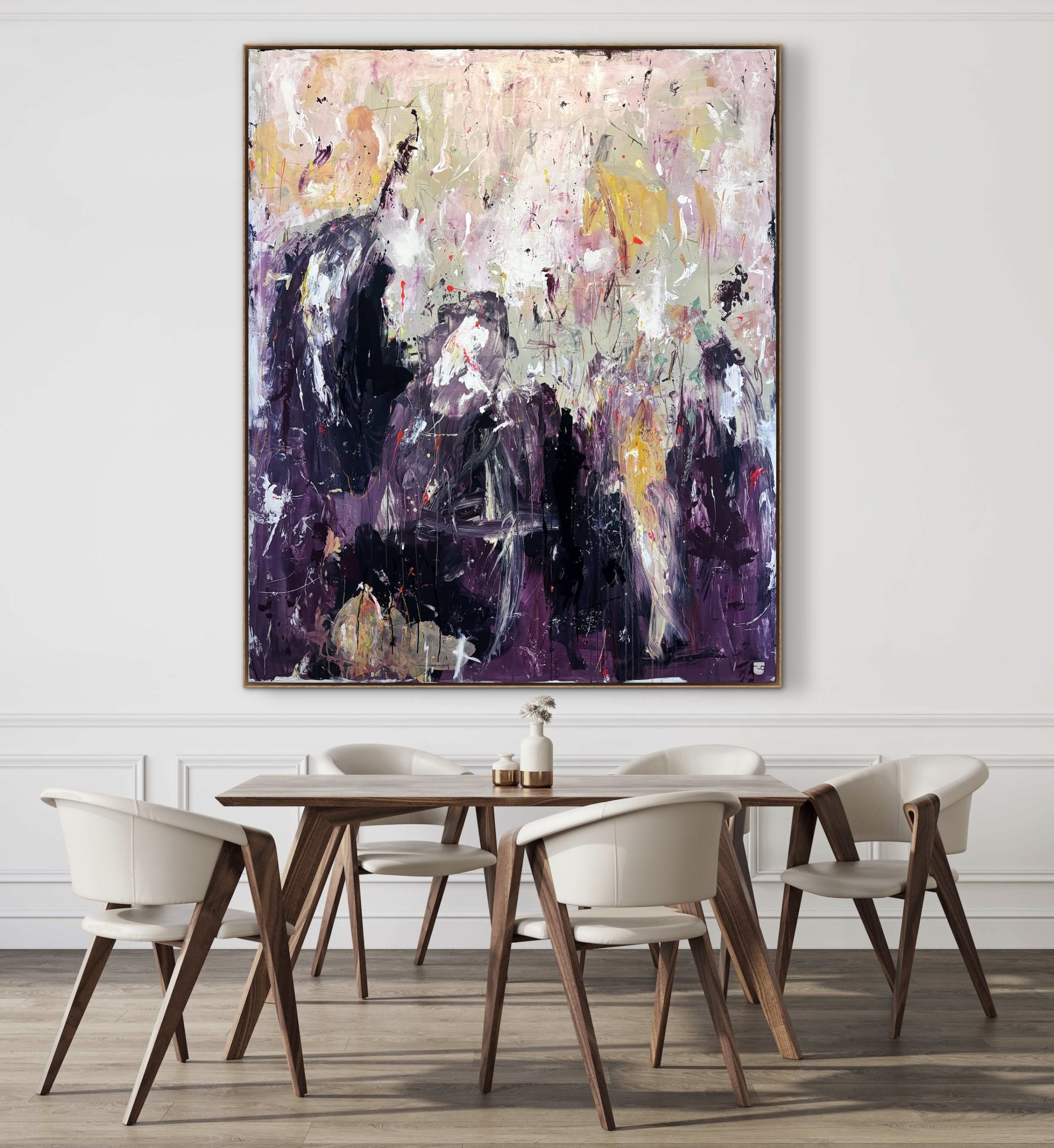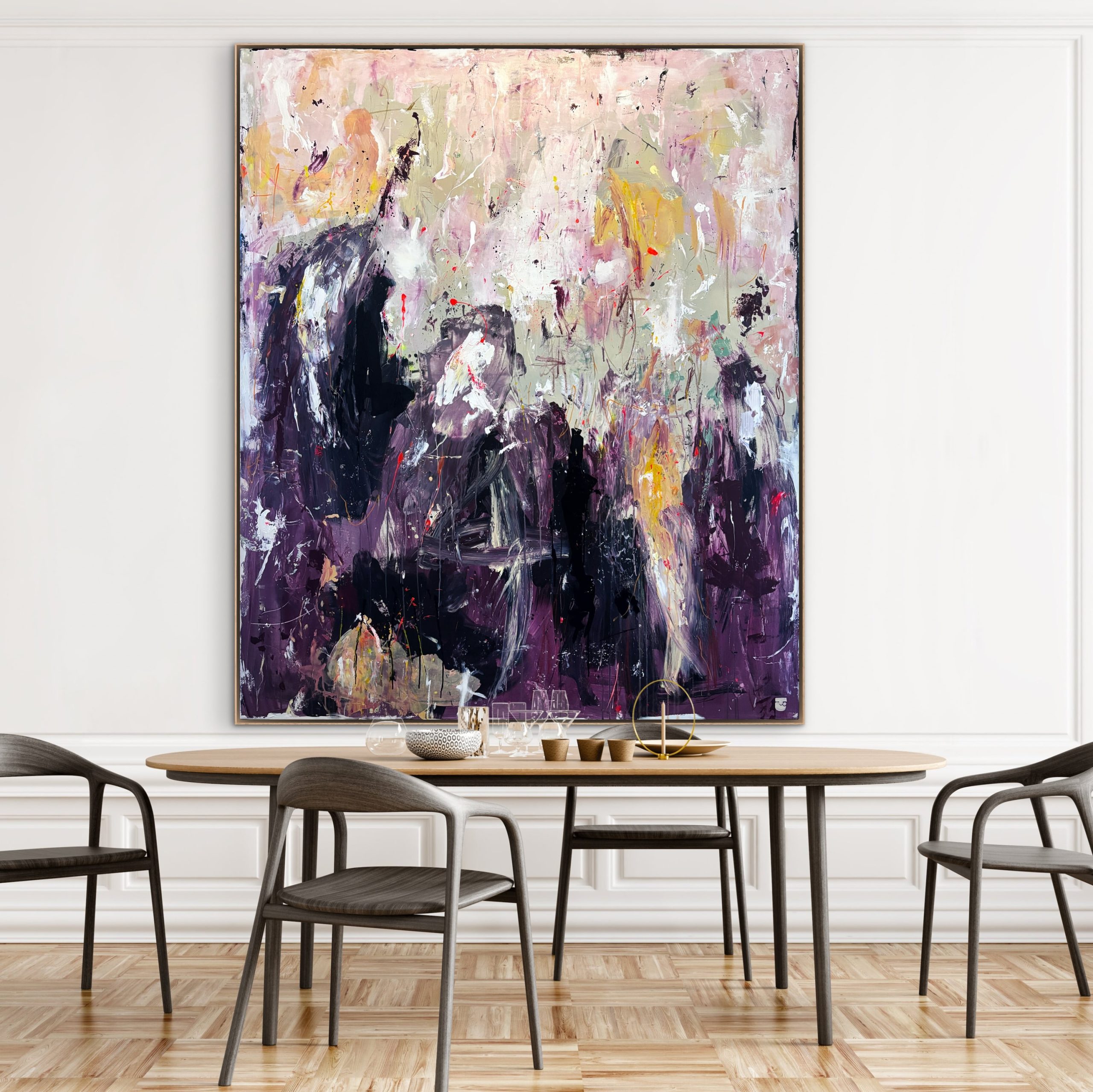 Malerierne kan fint hænge “råt” på væggen uden indramning. Men du kan tilføje et eksklusivt finish med en svæveramme i finér eller massiv eg. Se mulighederne under hvert maleri. Bemærk, at leveringstiden forlænges med en lille uge ved indramning. Maleriet leveres monteret i rammen.