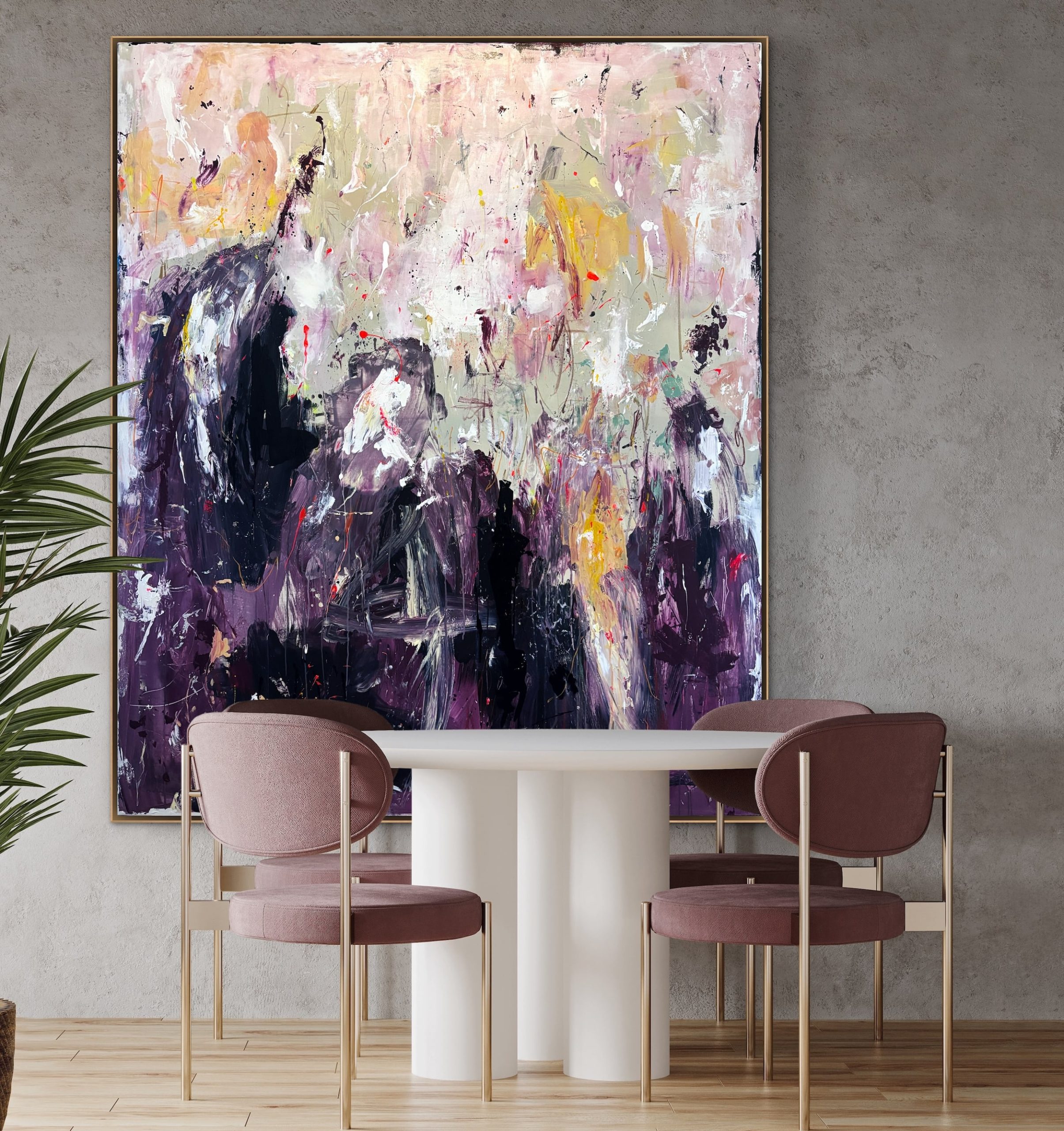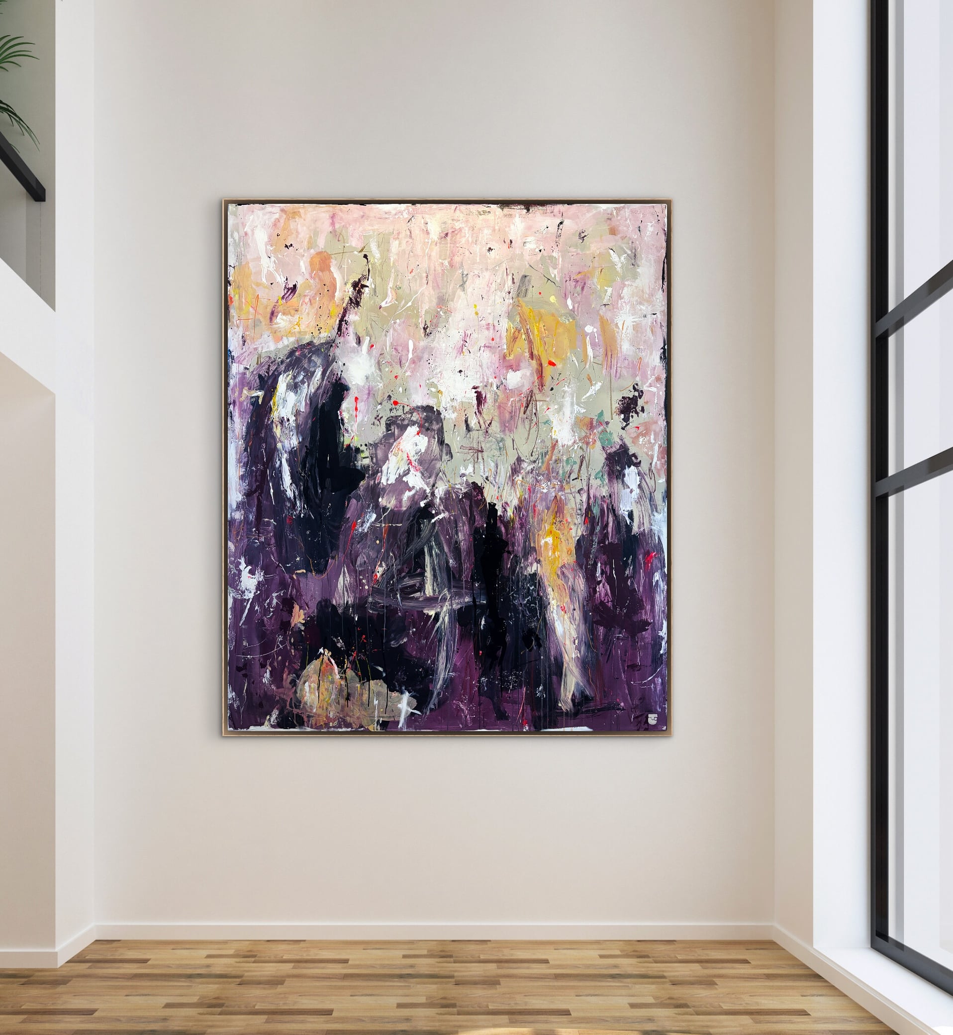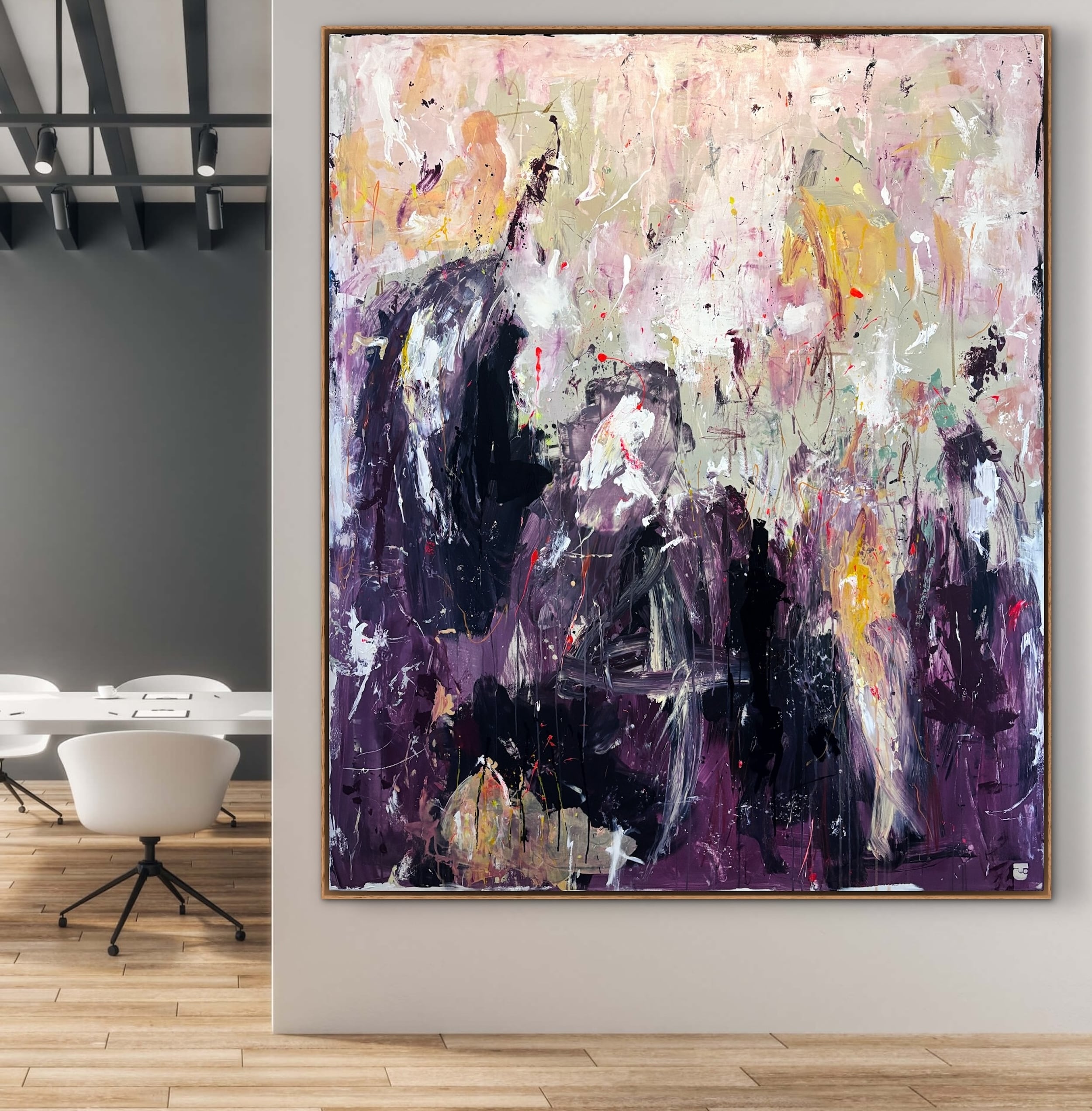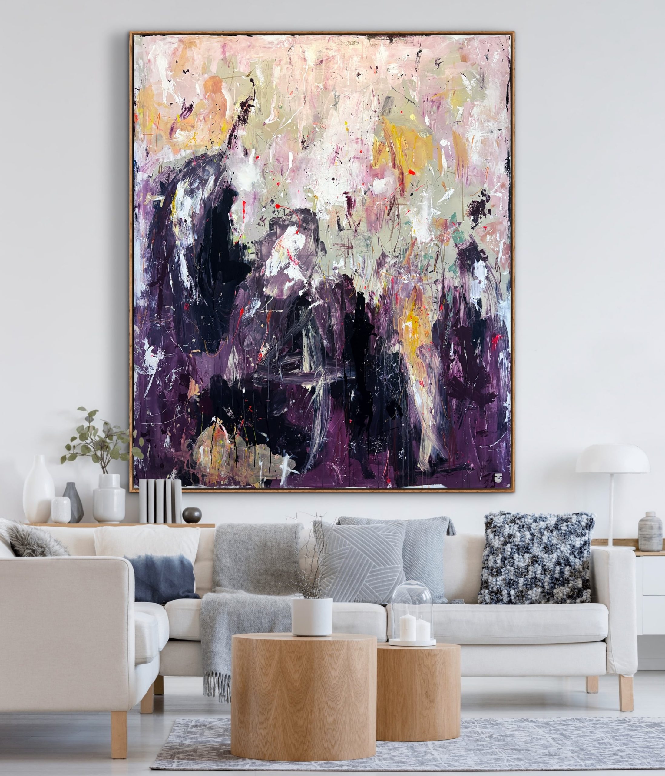 Alle mine malerier er designet til at kunne hænge “råt” på væggen uden indramning. Men du kan opnå et eksklusivt finish og tilføje dit eget præg ved at vælge en svæveramme, der passer godt til jeres indretning. Der er ca. en halv cm afstand mellem lærred og ramme.