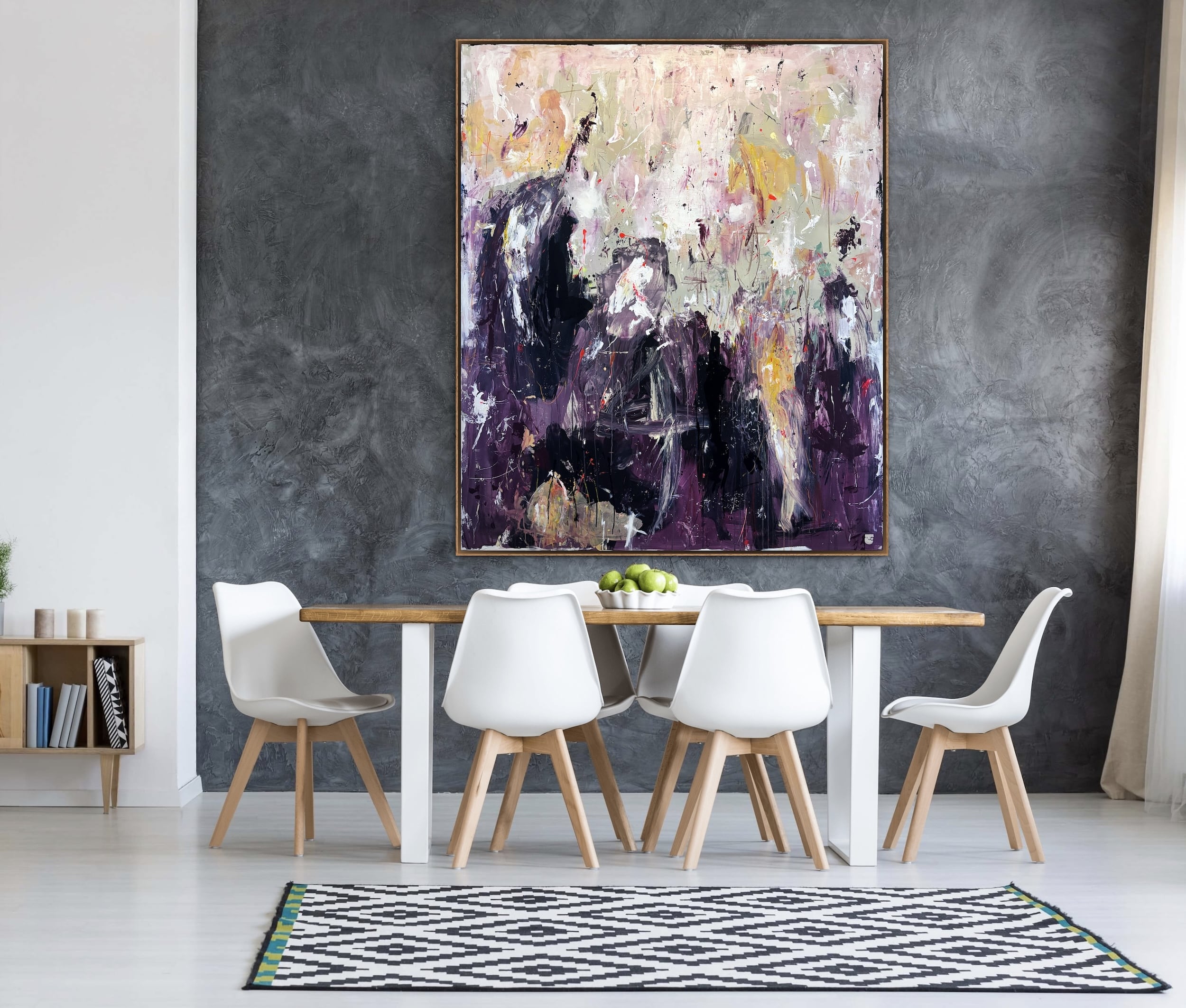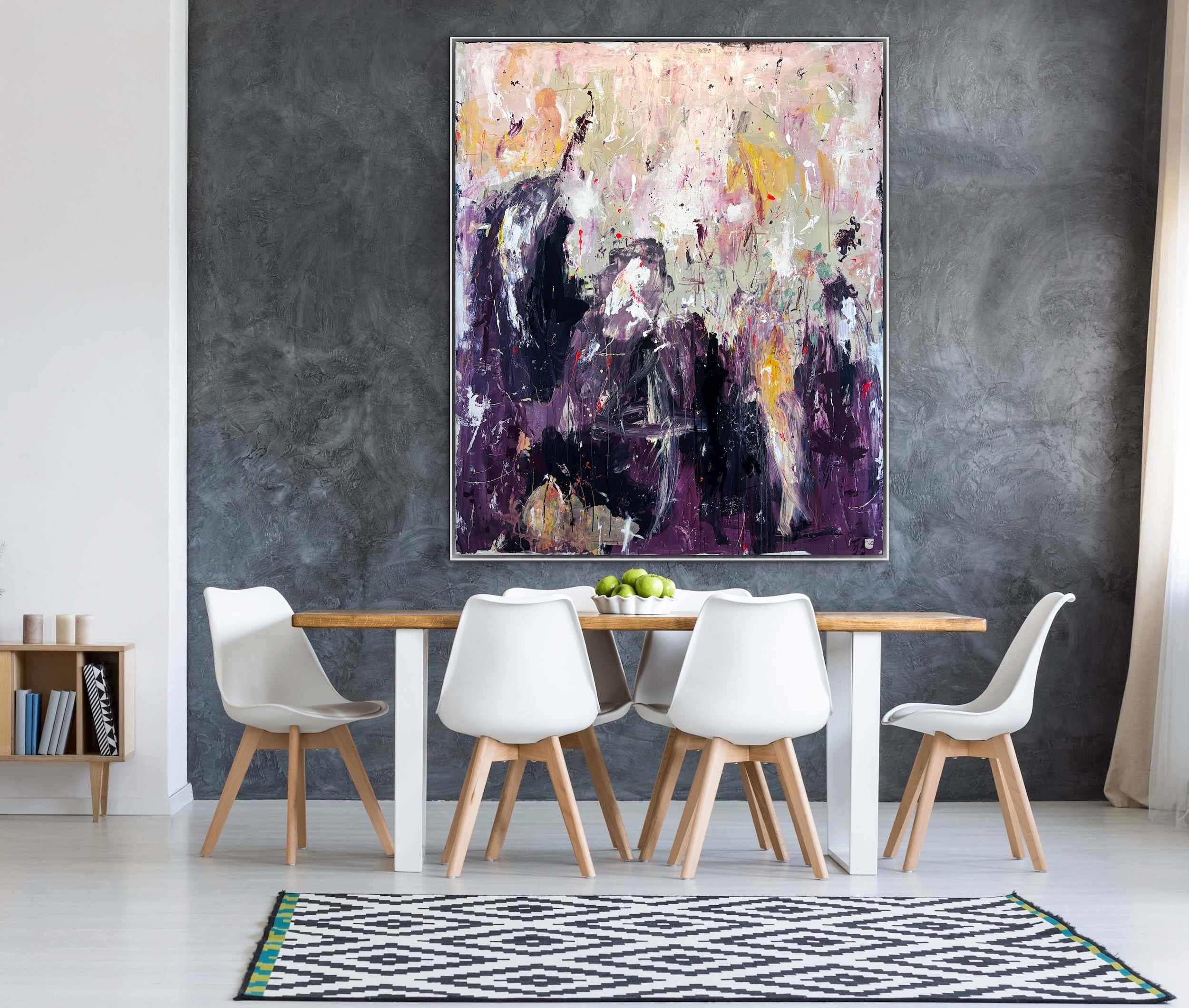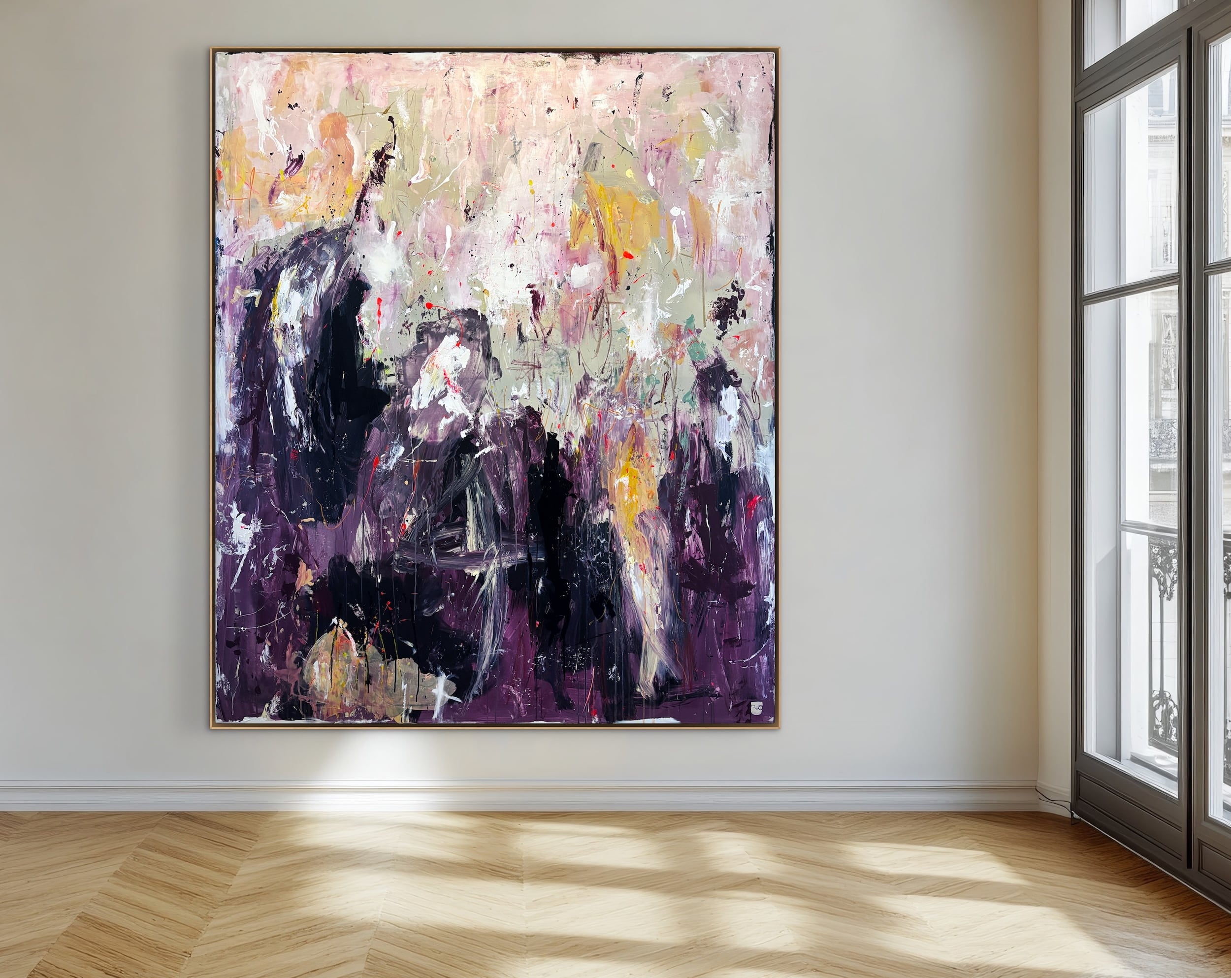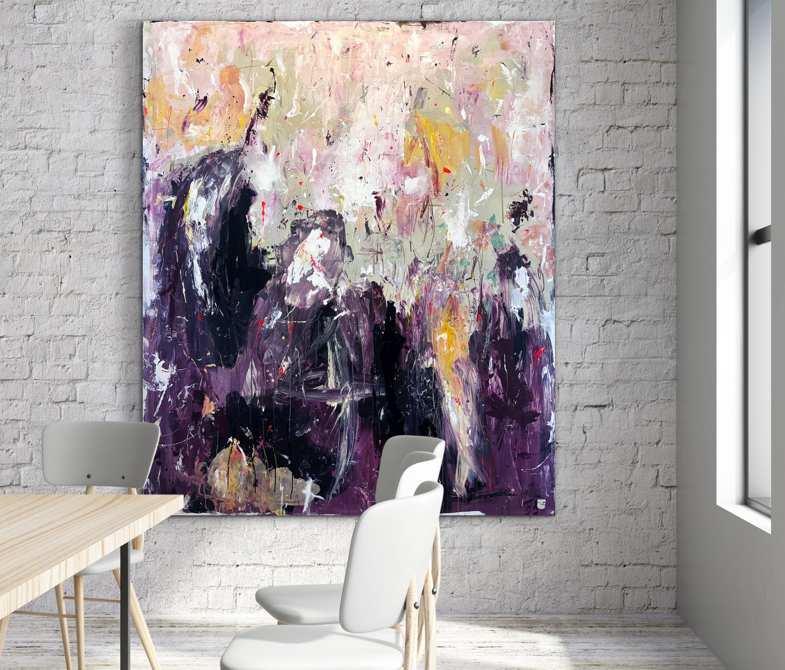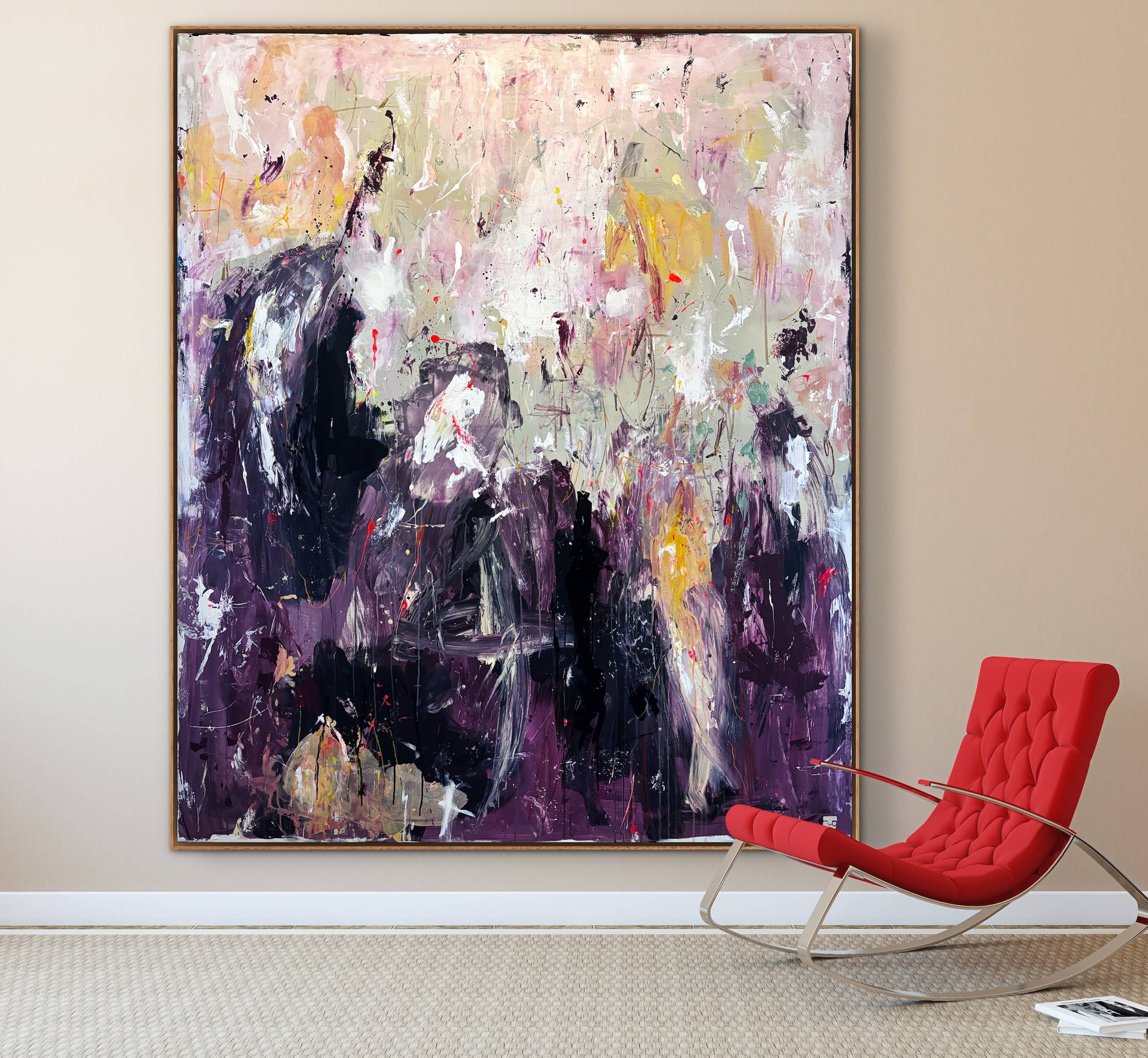 Alle mine malerier er designet til at kunne hænge “råt” på væggen uden indramning. Men du kan opnå et eksklusivt finish og tilføje dit eget præg ved at vælge en svæveramme, der passer godt til jeres indretning. Der er ca. en halv cm afstand mellem lærred og ramme.